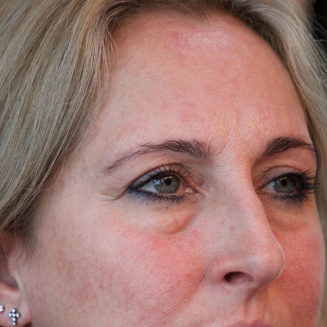 Laura fue parte de un estudio de observación destinado a analizar el impacto del tratamiento con radiofrecuencia, microcorrientes EMS y luz roja en la reducción de bolsas y retención de líquidos en la zona ocular.