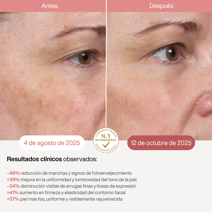 +35% aumento de luminosidad y tono uniforme del rostro